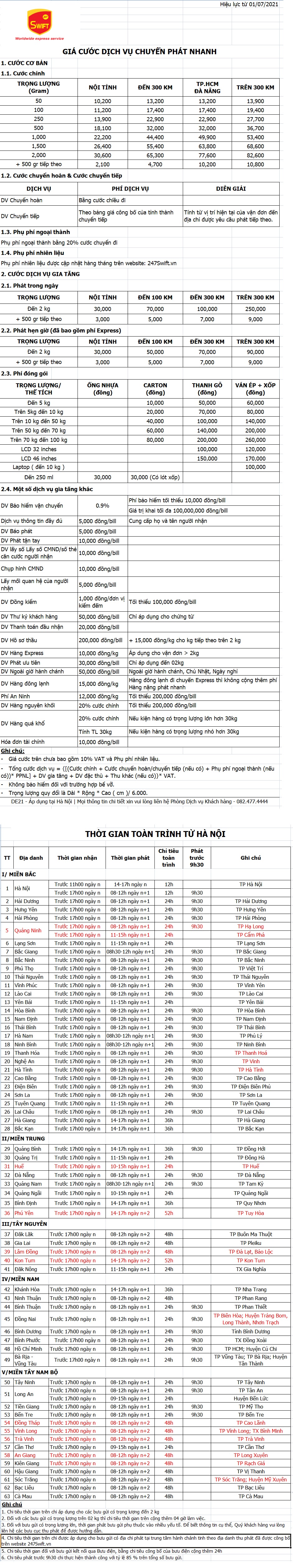 Bảng giá chuyển phát nhanh